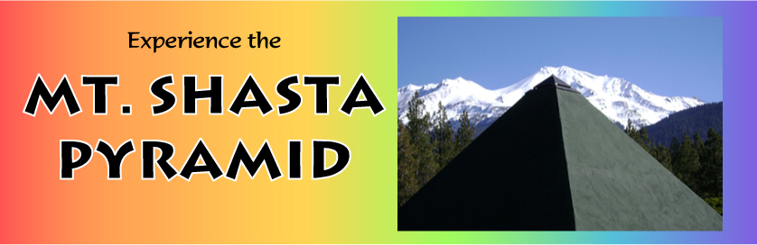 The Mt Shasta Pyramid is located on mystical Mt Shasta, where it gathers and concentrates the spiritual energies of this area. It has a 24 x 24 foot base, and stands over 15 feet tall. It has no windows or doors, so to enter you walk down a sloping tunnel, up some steps, and in through a door in the floor. It has a copper and quartz crystal capstone. The construction is wood frame, with a special layering process of conductors and insulators, to maximize energy storage. The outside is stucco.